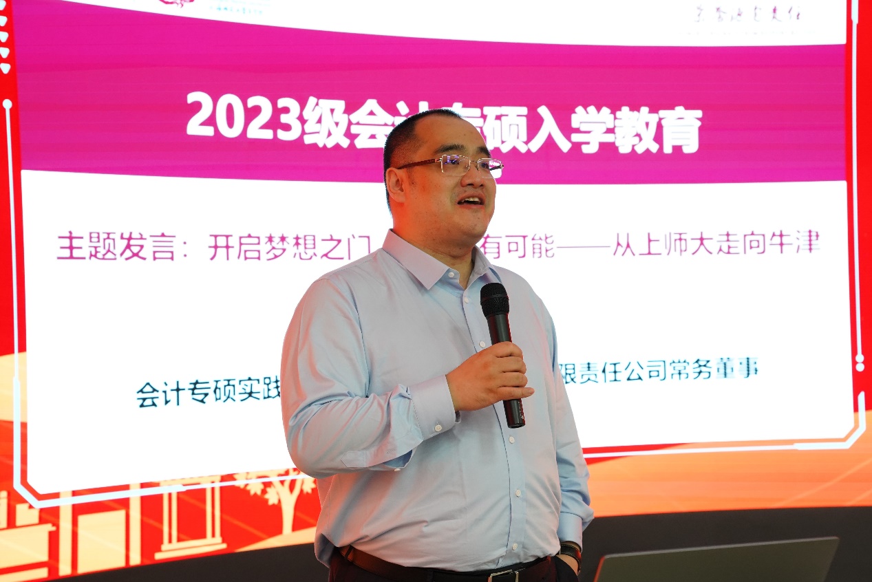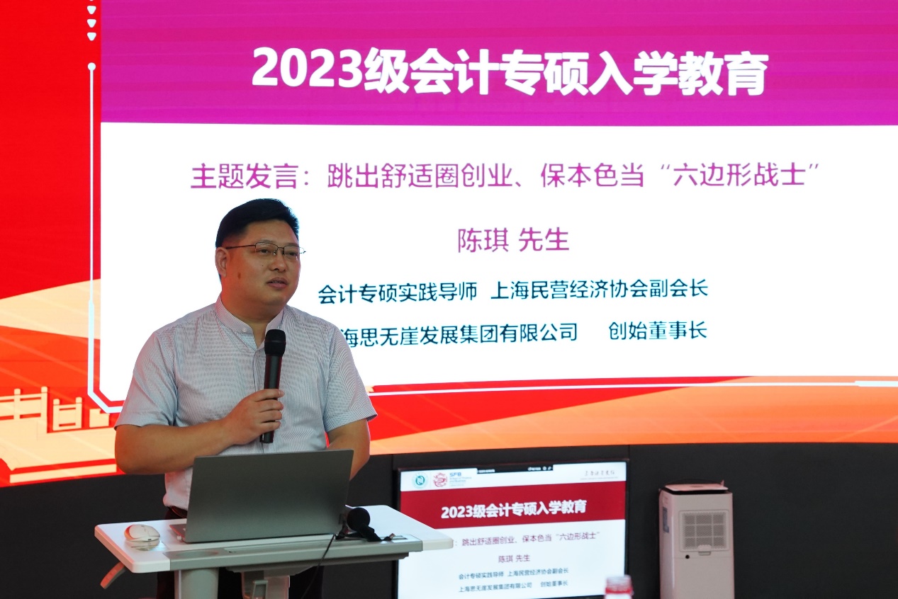 俄罗斯专享会官网MPAcc实践导师胡懿恺和陈琪分别就“开启梦想之门,一切皆有可能——从上师大走向牛津”、“跳出舒适圈创业、保本色当‘六边形战士’”进行了主题分享,通过分享个人的学习和职业经历,为新生的学习和未来发展提供经验,鼓励大家提前做好规划,以明确的目标,辅以坚定的定力,方能有更好的发展。