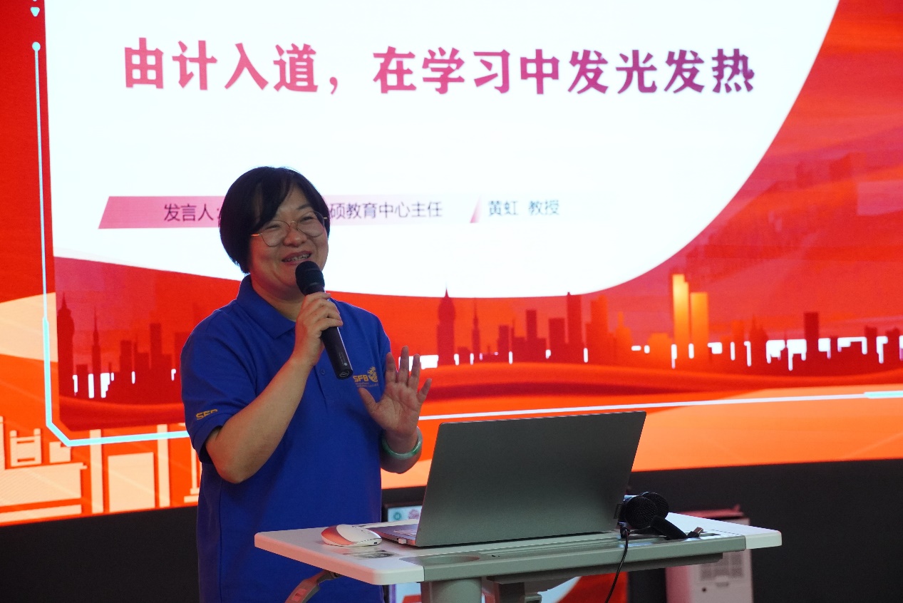 俄罗斯专享会官网会计专硕教育中心主任黄虹教授就“由计入道,在学习中发光发热”进行了主题分享。黄主任对学科的专业师资、专业发展等进行了全面介绍,在学术道德和学风建设、培养方案和行动轨迹等方面对全体新生予以指导和期望。通过分享往届学生的论文写作、就业情况以及职业规划经验,希望学生们“尊道学技,成就自我”。