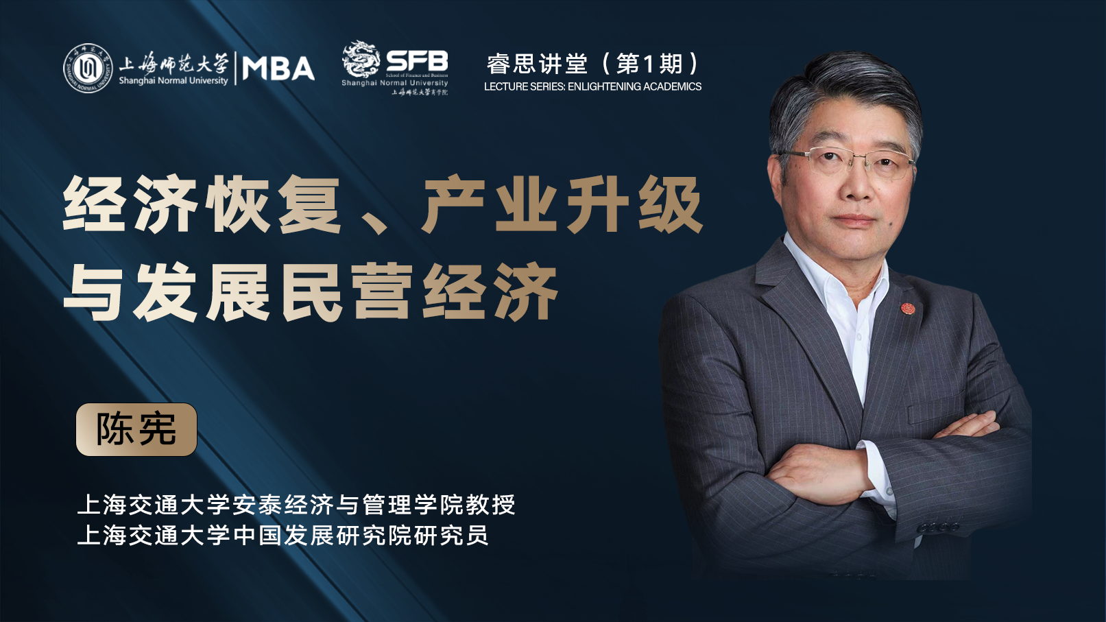 18日晚上MBA教育中心邀请上海交通大学安泰经济与管理学院陈宪教授,为2023级新生进行了睿思讲堂首讲《经济恢复、产业升级与发展民营经济》。