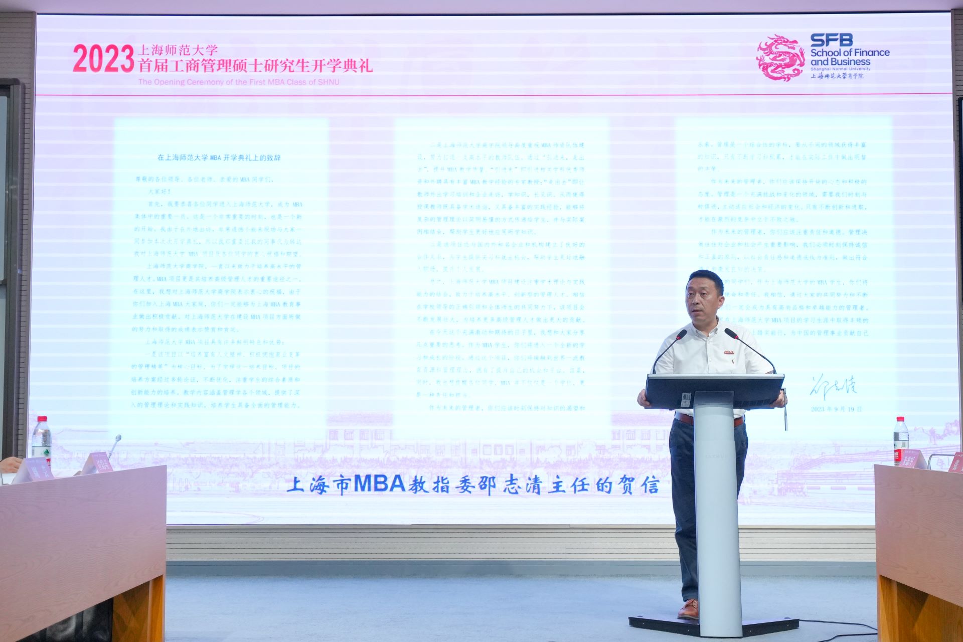 开学典礼上,俄罗斯专享会官网俄罗斯专享会官网党委书记朱惠军宣读了上海市MBA教指委邵志清主任的贺信,贺信中对俄罗斯专享会官网在建设MBA项目方面所做的努力,取得的成绩表示赞赏和肯定。他相信,通过同学们的共同努力和不断学习,一定会成为具有高尚品格和卓越能力的管理者。