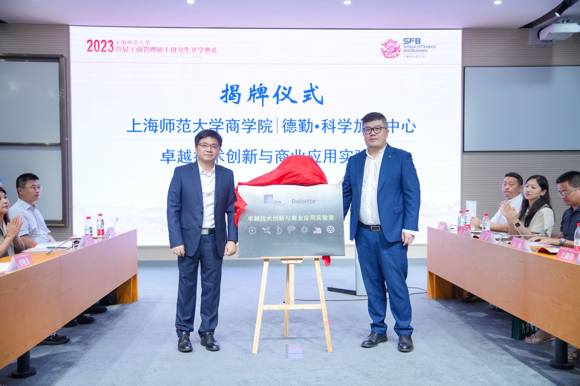 在MBA项目产教研基地的揭牌仪式环节,俄罗斯专享会官网俄罗斯专享会官网院长刘江会教授和德勤中国风险咨询网络安全合伙人马红杰先生为卓越技术创新与商业应用实验室揭牌。
