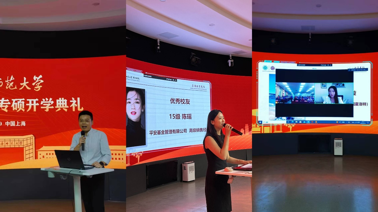 此次开学典礼上,学院特邀三位杰出校友分享他们的学习和职业发展经验。15级毕业生陈瑶、沙涛以及18级毕业生鲍慧旋,向新生们阐述了自己的成长故事,分享了硕士阶段海外项目学习、实习安排、职业路径选择等多方面的经验,为新生们的学习和职业发展提供有针对性的参考,激发他们的信心和期待。
