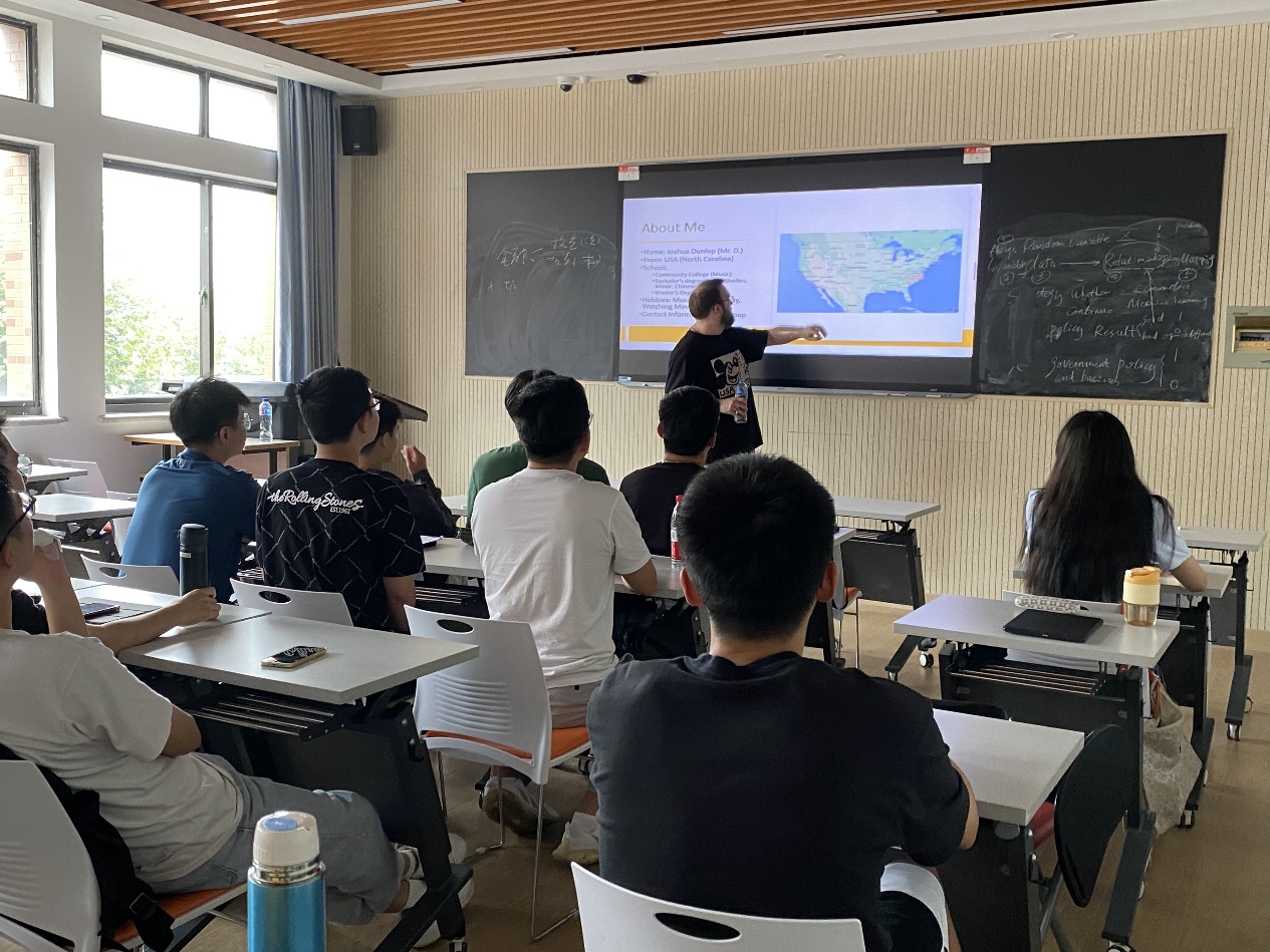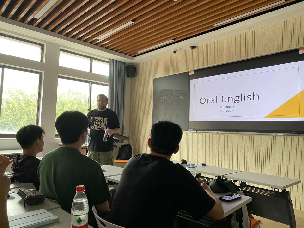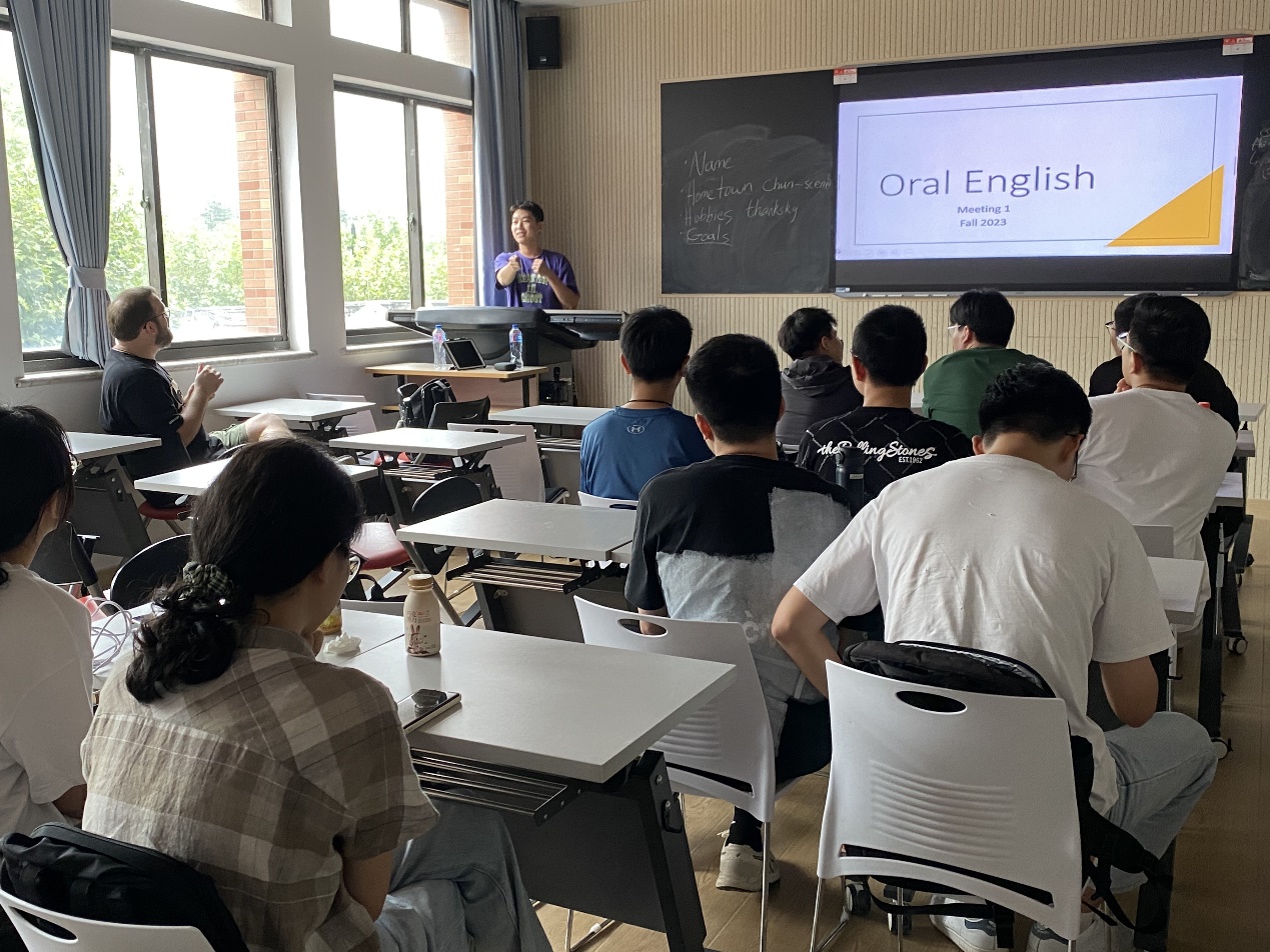 首堂课程中,Joshua老师就以亲切幽默的授课风格与学生们建立了友好的师生关系,营造出轻松而快乐的学习环境。其独特的教学方法和极具感染力的教学风貌,使得课堂氛围活跃,同学们非常快地融入其中,主动上台亮出自我,活跃发言。整个课堂,在欢声笑语中大家的口语表达能力都得到了良好的锻炼,与此同时,师生间的了解也更加深入。