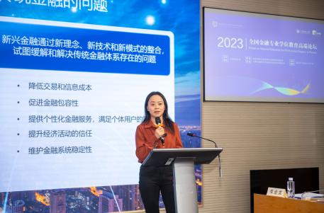 上海财经大学校长助理、金融学院党委书记、教育部刘莉亚教授,做了题为“关于新兴金融人才培养的思考”的主旨报告。刘莉亚教授从新兴金融和传统金融区别出发,借用上海财经大学滴水湖高级金融学院新兴金融人才培养办学理念将该主题具体化,对新兴金融的概念展开了深入解读,并探讨了新兴金融领域的人才需求与挑战。