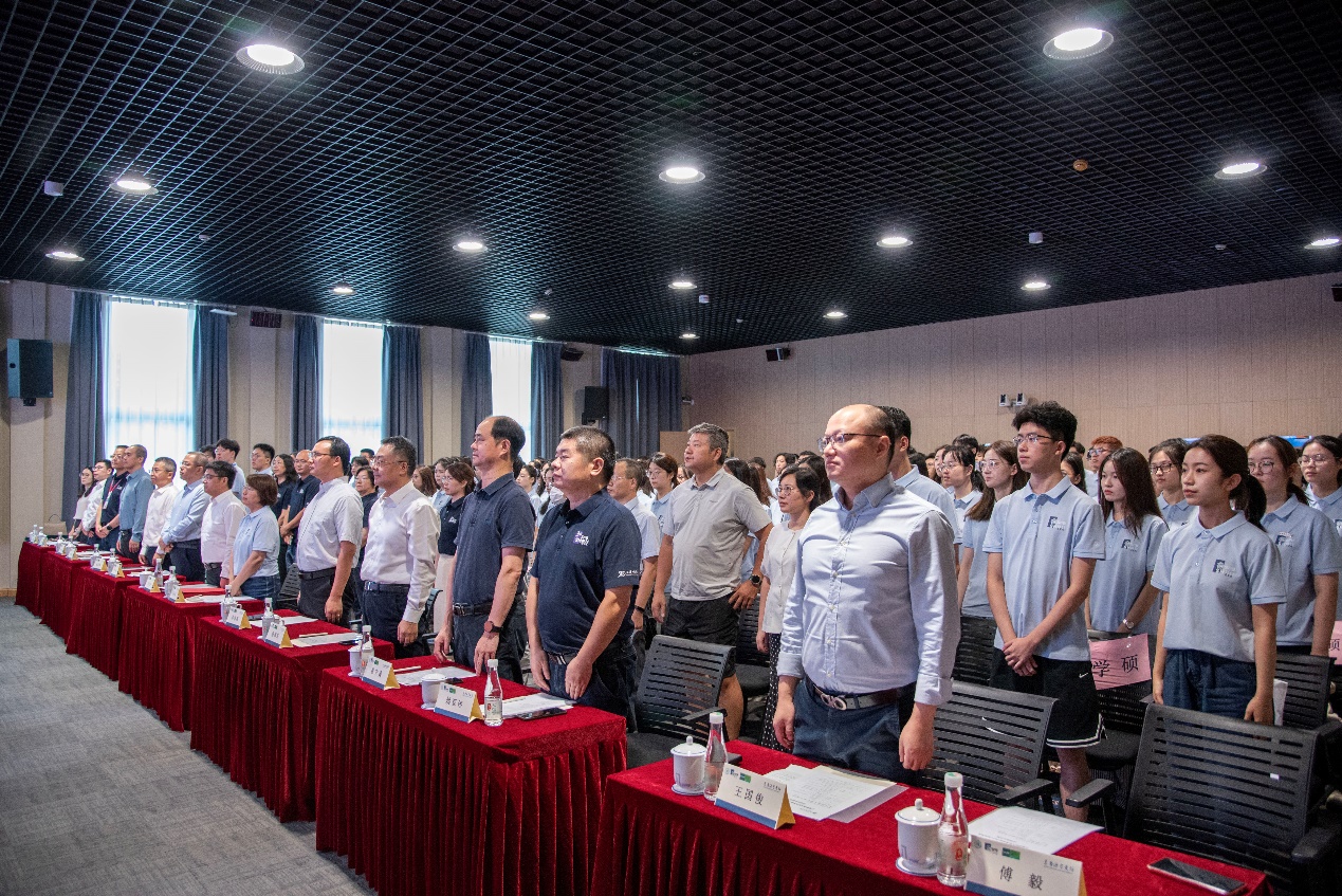 典礼在庄严的国歌声中拉开帷幕,全体师生肃立齐唱国歌,展现了研究生新生昂扬向上的精神风貌。